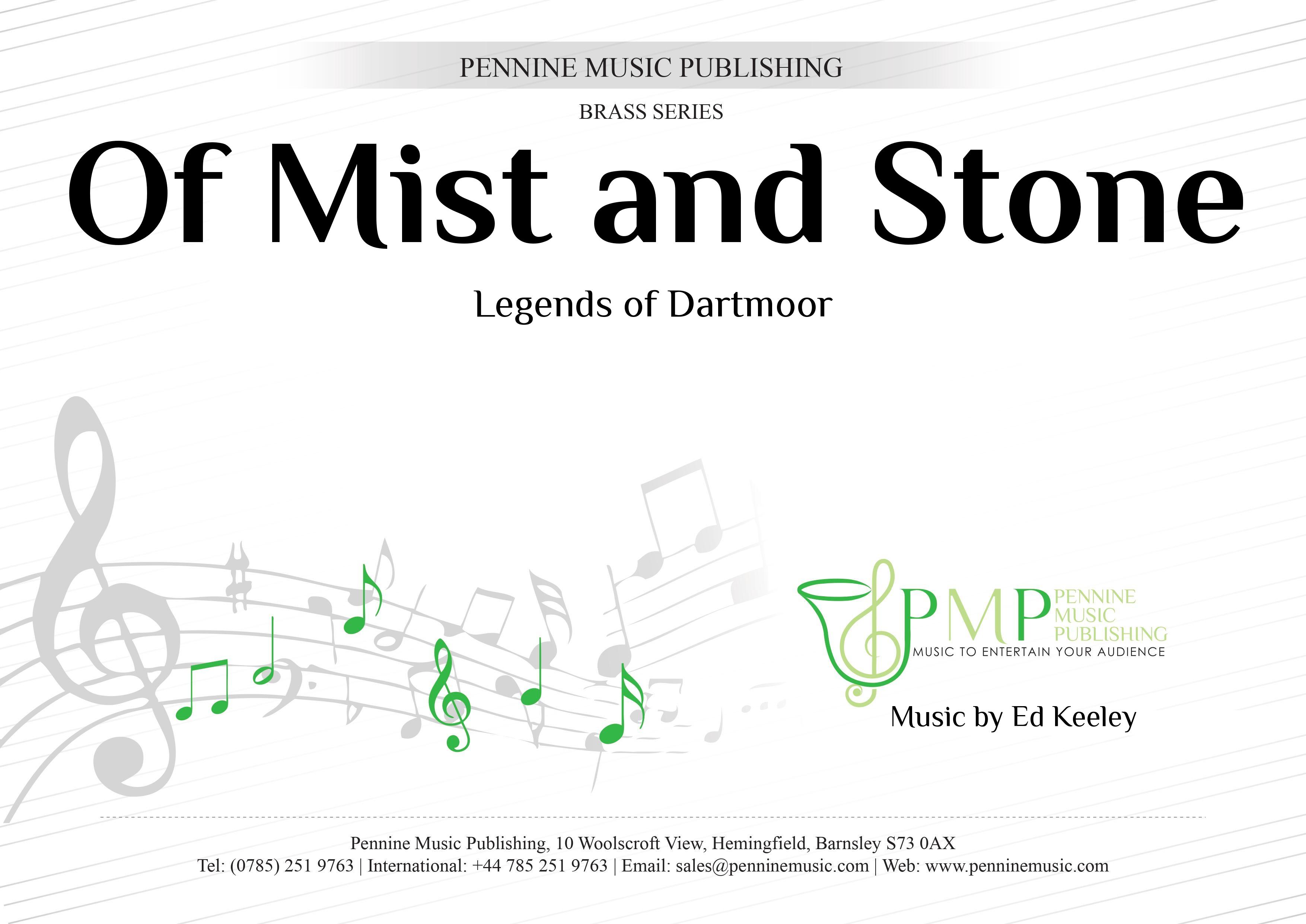 Of Mist and Stone: Legends of Dartmoor Programmatic Overture for Brass Band Inspired by the bleak yet compelling beauty of Dartmoor, Of Mist and Stone is a five-part attacca overture that explores the moor’s volatility, mystery, and enduring presence. The work opens with The Gathering Storm, where restless ostinato figures in the cornets and rumbling horns evoke wind, rain, and mist sweeping across the exposed landscape. From this turbulence emerges The Voice of the Moor — a mystic, modal theme that suggests the land itself finding voice in stark, elemental song. Stone and Restless Shadow contrasts the immovable weight of granite tors with shifting rhythmic figures and unsettled harmonies, hinting at ancient legends half-glimpsed through drifting mist. In The Voice Unveiled, the earlier motif returns with greater clarity and warmth, illuminated as though by the condescending sun, expanding toward a quiet affirmation. The overture’s short coda concludes with The Eternal Moor, where storm and stillness are reconciled in a restrained and understated recapitulation. Here, the landscape is portrayed as timeless and unyielding — enduring beyond weather, beyond memory, beyond myth.